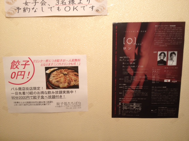 ドリンク一杯頼むと、餃子が無料で付いてくる。